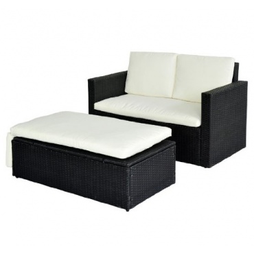 Im Sommer kann man wieder lange draußen sitzen und die angenehme Wärme genießen. Mit dem richtigen Gartenmöbel macht das richtig viel Spaß. Für Entspannung pur sorgt das Polyrattan Gartengarnitur 6tlg. Doppelsofa. Egal ob auf dem Balkon, der Terrasse, im Wintergarten oder auf dem Rasen - das Sofa ist nicht nur was fürs Auge, sondern obendrein noch sehr bequem. Das Doppelsofa verfügt zusätzlich noch über einen Hocker. Da es aus Rattan besteht, ist das Sofa besonders pflegeleicht und lange haltbar. Polyrattan ist sehr witterungsbeständig und sehr leicht zu reinigen. Daher macht ihm Regen und Feuchtigkeit nichts aus. Zudem ist es sehr stabil, daher darf man sich auf dem Sofa beruhigt fläzen.