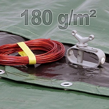 Die Hochwertige PE Ganzjahres Schwimmbad-Abdeckplane in dem Maß von 4,2 im Durchmesser eignet sich hervorragend als Sommer- und Winterplane. Aufgrund der großzügigen Größe und der Schwere von 180 g / m² kann die Plane ohne Befestigung im Sommer über das Becken gelegt werden und schützt so schon vor Schmutz und UV-Strahlung, die durchdachte Farbwahl, Oberseite grün und Unterseite schwarz sorgt für das Reflektieren der Strahlungen und beugt der Algen- und Schimmelbildung vor. Im Winter wird die Plane mit inkludierten Befestigungsmaterialien dem Spannschloss mit Stahlseil fest mithilfe der Metallösen mit dem Pool verbunden. Das reißfeste Material Polyethylen-Gewebe hält auch eine hohe Schneebelastung aus.. Die Plane ist temperaturbeständig bei - 40 bis 70 Grad und somit für alle Jahreszeiten geeignet.