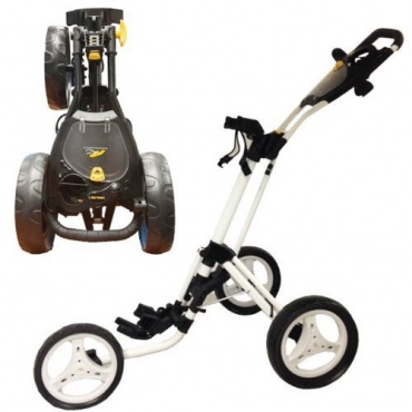 Ein Elektro Trolley muss nicht immer teuer sein, wie dies Modell eindrucksvoll zeigt. Wenn wenig Geld verfügbar ist, so ist dieser Trolley die richtige Entscheidung. Es sind vor allem die Räder, welche dafür sorgen, dass der Trolley stets stabil auf dem Rasen stehen kann. Zudem überzeugt der Trolley durch eine schlichte, aber schicke Farbe, nämlich Weiß.
