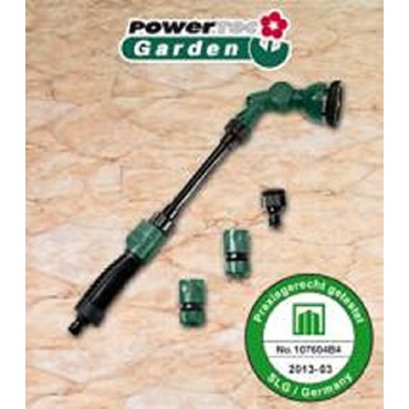 Der Gießstab verfügt sechs praktische Einstellungen zur bedarfsgerechten Veränderung des Sprühbildes. Die Riffelung am Griff lässt den Bewässerungsstab rutschfest in der Hand liegen. Der abschraubbare Handgriff verfügt über einen Einhand An- und Ausschalter. Die Gartenhilfe ist von robuster Qualität und kann langlebig genutzt werden. Das Powertec Garden Handregner-Set beinhaltet bereits die erforderlichen Schlauch-Anschlussstücke mittels Klick-System. Das Produkt ist praxisgerecht getestet nach SLG Germany.