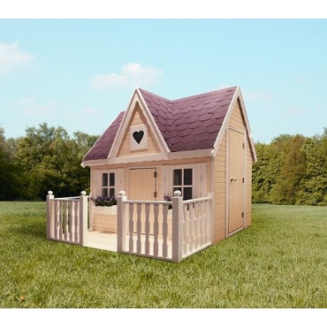 Diese Veranda veredelt das Erscheinungsbild des Kinderspielhauses Schwalbennest deutlich. Denn aufgebaut sieht diese Veranda sehr toll aus und passt perfekt zum Design des Kinderspielhauses Schwalbennest. Sogar einen Fußboden besitzt diese Veranda. Natürlich sind die Maße genau auf die des Kinderspielhauses Schwalbennest abgestimmt. Der Zusammenbau ist auch nicht schwierig und kann schnell und unkompliziert durchgeführt werden. Schließlich ist eine Anleitung dabei.