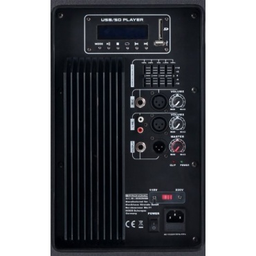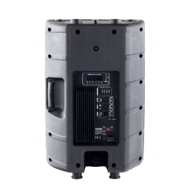 Diese Lautsprecherbox beinhaltet einen Display und einen MP3-Player mit USB/SD-Schnittstelle. Mit den Funktionen Start, Pause, Skip, Stop, Repeat und einer Lautstärkeregelung ist sie einfach zu bedienen. Der Klanggeber hat einen Line-Input (XLR/Cinch), mit den er Signale vom Mischpult, Musikinstrumente und CD/MP3-Player empfangen kann. Damit man direkt ein Mikrophon anschließen kann, enthält der Lautsprecher einen Mic-Input (XLR/Klinke). Er besteht aus einem schwarzen Kunststoffgehäuse mit einem frontseitigen Metallgitter.
