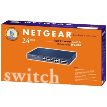 Der Neatgear ProSafe ist ein Fast Ethernet Switch und bietet eine Anschlussmöglichkeit für 24 Netzwerkgeräte. Der Switch ist unmanaged und somit ein Plug und Play Produkt. Es reicht aus den Computer und weitere Netzwerkgeräte per Ethernetkabel ihm zu verbinden. Der ProSafe ist 10 Mbit sowie 100 Mbit fähig. Die Status-LED's auf der Frontseite ermöglichen den Überblick über den Status sämtlicher Ports und für die Stromversorgung.