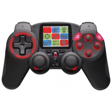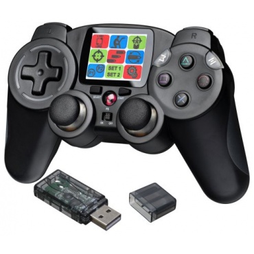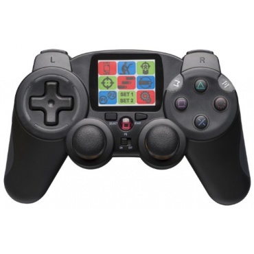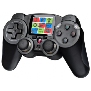 Der PS3 - RF-Controller "Quickfire 2" ist neben den üblichen PS3-Controllern zusätzlich mit einen LCD-Display ausgestattet. Das LCD-Display befindet sich prinzipiell genau mittig auf dem RF-Controller und ist vollgrafikfähig. Mit diesem COntroller besitzt man demnach noch mehr Optionen für eine schnelle Bedienung und Einstellung InGame sowie des Controllers an sich.