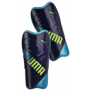 Testbericht: PUMA Schienbeinschoner Evospeed,Violet-Fluro Yellow-Blue, L