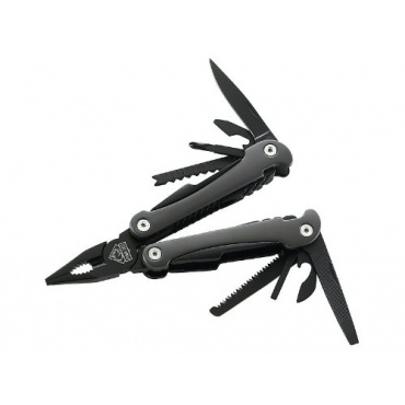 Der rostfreie Stahl ist mit einer Black Oxide Beschichtung ausgestattet. Diese Beschichtung ist abriebfest und schützt vor Wasser. Mit der Zange an einem Ende, lassen sich Kabel problemlos abisolieren. Sie dient zum Greifen kleiner und schwer erreichbarer Dinge und schneidet Kabel mühelos durch. An dem Multifunktionstool befinden sich außerdem ein Kreuz - und Schlitzschraubendreher, eine Säge, ein Messer mit Wellenschliff, ein Dosen- und Flaschenöffner, eine Feile und das Messer mit gerade Klinge.