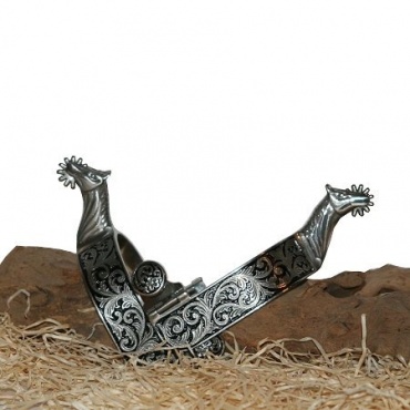 Wer Westernstiefel besitzt, braucht auch solche Sporen. Diese sind besonders toll, weil sie schwer sind und dadurch auch noch tolle Geräusche herausbringen. Die Sporen sind toll und sehen gut aus. Sie sind auf alt gemacht und das macht sie sehr besonders im Aussehen. Diese Sporen haben neben der eigentlichen Funktion und dem Rad, das sich am Ende befindet, auch ein paar tolle Floral Gravuren. Der Hals der Sporen hat die Form eines Pferdekopfes. Das macht alles noch toller.