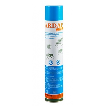 Das Quiko Ardap Ungezieferspray ist ein Universalspray gegen Ungeziefer wie Ameisen, Spinnen, Fliegen oder Milben. Das hochwirksame Spray mit der Gefahrenklasse 2 eignet sich unter anderem auch in Verbindung mit Hunden und Katzen zur Bekämpfung von Flöhen und Zecken. Die Wirkung tritt sofort ein und hat einen Langzeiteffekt von bis zu sechs Wochen.