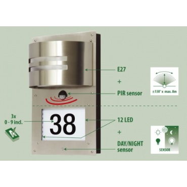Die Ranix Hausnummern- und Sicherheitsbeleuchtung für die Anbringung im Freien ist eine Edelstahlkonstruktion, die rostfrei bleibt. Es ist ein Dämmerungssensor integriert und die Leuchtdauer ist einstellbar zwischen 4 - 10 Minuten. Die Stromversorgung des Produkt erfolgt über die Steckdose. Mit der Schutzklasse IP44 ist das Produkt allerdings durch Spritzwasser geschützt.