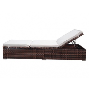 Moderne Liege aus optisch gut aussehendem Polyrattan, welche mit hellen Kissen versehen ist, die höchsten Komfort bieten. Sie dient nicht nur als Liege, sondern auch als Bank um mehreren Menschen eine Sitzgelegenheit zu bieten. Zudem ist die Liege/Bank beidseitig aufklappbar und bietet somit auch eine Rückenlehne oder eventuellen Stauraum im Inneren.