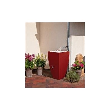 Der rubinrote Regenwassertank REWATEC Modena sieht aus wie ein eleganter Pflanzenkübel. Aufgrunddessen, dass diese Wassertonne nicht viel Platz benötigt, lässt sie sich gut an jede Hauswand plazieren. Der Wasserspeicher wird von oben durch die Regenklappe befüllt oder durch seitlichen Anschluss. Das gesammelte Regenwasser entnimmt man problemlos ohne statischen Druck durch den Auslaufhahn, der als Anschlussgewinde aus hochwertigem Messing besteht.