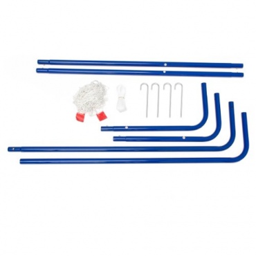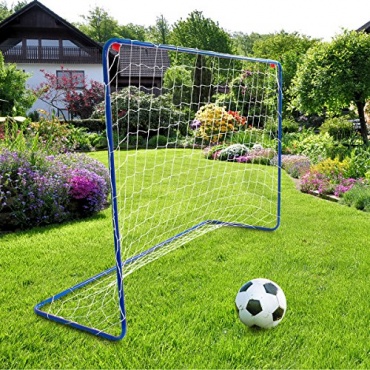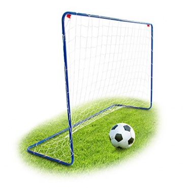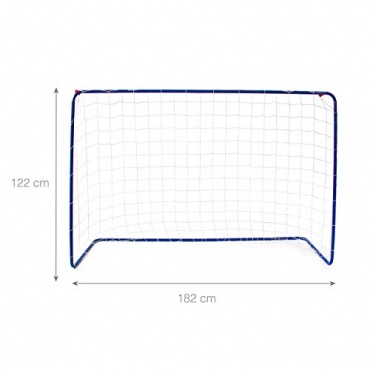 Mit den vier Heringen, die in der Lieferung enthalten sind, wird das Tor auf weichem Boden fixiert. Der blau-lackierter Rahmen ist aus stabilem Metall hergestellt und das weiße Netz aus strapazierfähigem Nylon. Das Mini Fußballtor hat Abmessungen mit einer Breite von 183 cm, sowie eine Höhe von 122 cm und eine Tiefe von sechzig Zentimeter und bietet somit ausreichend Platz zum Spielen.