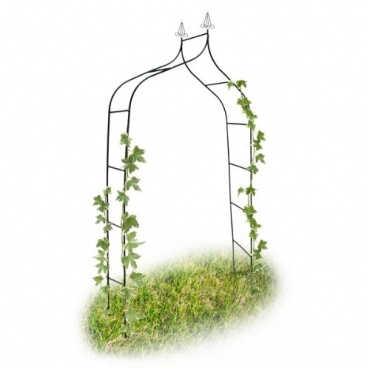 Der Rosenbogen aus Metall ist 2,40 m hoch und erstreckt sich über die Breite von 1,70 m. Er bietet ihren Kletterpflanzen einen guten Halt und lässt sich leicht mit einer Anleitung installieren. Sie müssen lediglich alles zusammenstecken, danach verschrauben und in den Boden stecken, dann sind sie schon fertig und können sich an dem wetterfestem Rosenbogen erfreuen. Zudem kann man ihn leicht umstellen, wenn er Mal nicht mehr an diese Stelle passt. Der Rosenbogen ist nämlich sehr leicht und lässt sich gut transportieren.