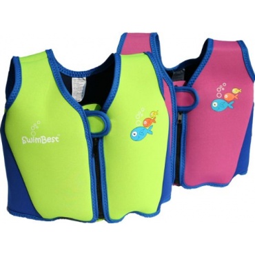 Die Schwimmweste von Swimbest wird wegen ihrer knalligen Farben und den aufgedruckten Fischen mit den Blasen den Kindern gefallen. Für die Eltern wird der praktische Nutzen wichtiger sein. Die Schwimmweste kann eine nützliche Hilfe beim Schwimmenlernen sein. Weil die Arme frei sind, werden die richtigen Schwimmbewegungen besser gelernt. Außerdem liegen die Kinder natürlicher im Wasser als mit Schwimmärmeln oder einen Schwimmring.