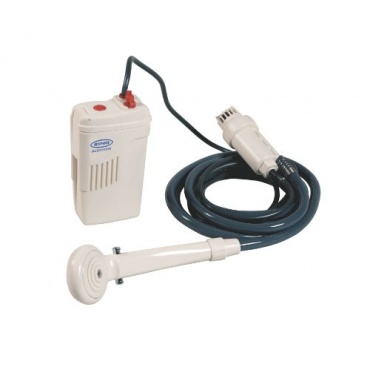 Energie wird aus der Batterie (12 V) genommen. Die mobile Dusche ist in der Farbe weiß erhätlich und generell sehr einfach gehalten. Auch ist sie für Salzwasser geeignet, somit kann auch einfach Regenwasser eingefüllt werden.