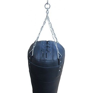 Vollständig aus Leder hergestellt ist der Boxsack. Der Boxsack wird mit einer 4-fach Ketten-Aufhängung und mit einem Drehwirbel geliefert. An der Kette gibt es auch ein Gurtband aus Gewerbe, das doppelt genäht ist. Farblich ist der Boxsack in einem schwarzen Farbton gehalten. Der Boxsack kommt auf ein Gewicht von 40 kg. Die Abmessungen vom Boxsack betragen 140 cm in der Höhe und 40 cm in der Breite.