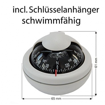 Der Riviera Kompass Comet BC2 ist kompakt und zuverlässig. Er verfügt über einen Schlüsselanhänger und ist schwimmfähig. Er ist äußerst robust und ein tolles Geschenk für jeden Bootsliebhaber. Der Kompass hat einen Durchmesser von 65 mm und ist ideal für kleine Sportboote und Segelboote geeignet. Er ist weiß und hat einen schwarzen Hintergrund. Dadurch sind die weißen Zahlen gut zu erkennen.