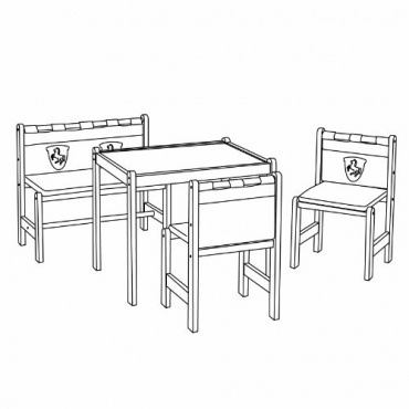 Die Roba Kindersitzgruppe Schloss erschafft eine Tafelrunde im heimischen Kinderzimmer. Schließlich ist diese Kindersitzgruppe so designt, dass eine schöne Schlossatmosphäre entsteht. So können sich kleine Mädchen wie Prinzessinnen fühlen und kleine Jungen richtige Ritter sein. Optisch ist diese Kindersitzgruppe wirklich voll und ganz gelungen. Besonders schön sind die Wappen, die an den Lehnen der beiden Stühle sowie an der Banklehne zu sehen sind.