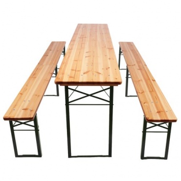 Bierzeltgarnituren sind äußerst praktische Begleiter für jedes Fest. Mit ihren Holztischplatten und -sitzbänken bieten sie einen schönen Anblick und sind zugleich unheimlich funktional. Sie sind problemlos abwischbar und stehen auf stabilen Metallfüßen. Diese lassen sich auch anklappen und reduzieren die Maße der Tische und Bänke damit erheblich. Ein Transport ist somit überhaupt kein Problem mehr! Und auch die Lagerung wird dadurch viel einfacher.