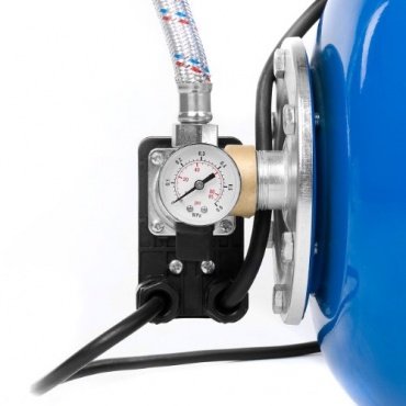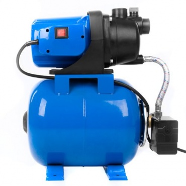 Das Hauswasserwerk verfügt über einen elektronischen Druckschalter, der sich durch ein Manometer eigenständig bei Wasserbedarf ein- und ausschaltet. Breite Standfüße verleihen ihm Stabilität. In einer Stunde kann das Wasserwerk bis zu 3.000 Liter fördern, die Wassertemperatur kann dabei zwischen 4°C und 35°C liegen. Die maximale Saughöhe beträgt 8 Meter, der Kessel fasst bis zu 20 Liter Wasser.