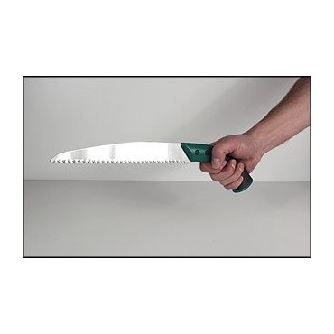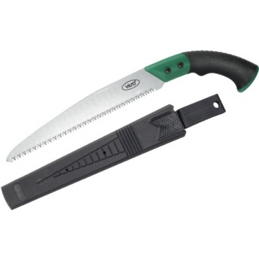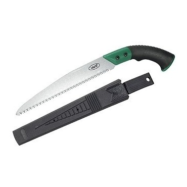 Die Säge VG 5007 aus dem Hause Varo Garden tools ist eine auffällig geformte Handsäge. Diese traditionelle japanische Form unterscheidet das Gerät bereits optisch von vergleichbaren Modellen. Die zuverlässige Einhand-Säge schneidet sowohl auf Zug, als auch auf Druck und beschleunigt die Arbeit somit ungemein. Diese immer scharfe Säge besitzt ein patentiertes Design von Zahnung und Schliff. Sie bleibt durch diese Anordnung deutlich länger scharf als herkömmliche Modelle, die mitunter nachgeschärft werden müssen.
