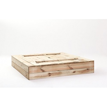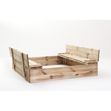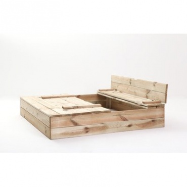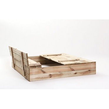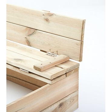 - Der Sandkasten besteht aus robustem Holz. Er besitzt eine praktische Abdeckung, die als Bank verwendet werden kann.