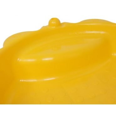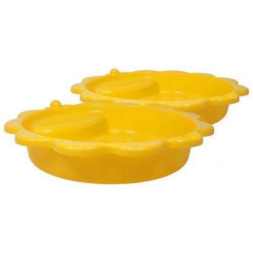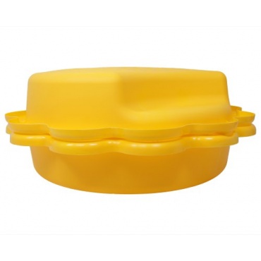 Gleich zwei Exemplare des gelben Sandkastens werden von der Firma Sonnenblume bereitgestellt. Sie bestehen aus Kunststoff und eignen sich auch als Planschbecken. Sie sind mit einer kleinen Sitzfläche ausgestattet. Jede Form kann 30 bis 40 Liter Sand oder Wasser aufnehmen. Die Befüllhöhe liegt bei etwa 15 cm. Damit besteht keine Gefahr, dass ein kleines Kind Schaden nimmt. Mit einer Sonnenblume kann die andere nach einer Nutzung abgedeckt werden, um einen Schutz vor Dreck zu gewährleisten.