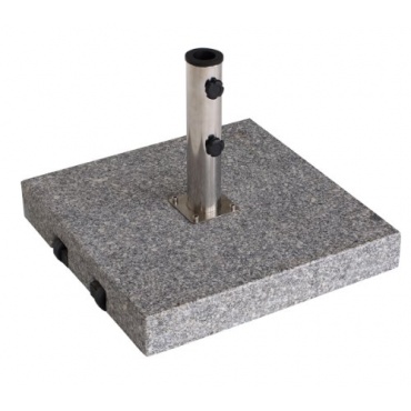 Der Schirmständer in eckiger Form ist aus massivem grauen Granit gefertigt. Der sechzig Kilogramm schwere Ständer ist mit praktischen Rollen ausgestattet und kann ganz einafch transportiert werden. Seine Abmessungen sind 52x52 Zentimeter. Die Optik des Granitständers ist sehr ansprechend.