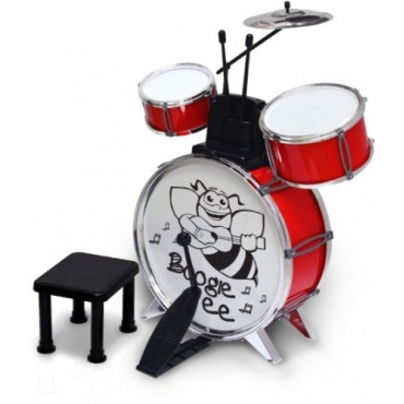 Bei dem Kinderschlagzeug Boggie Bee aus dem Hause VEDES handelt es sich um ein Komplett-Set. Es besteht aus dem Becken, zwei verschiedenen Trommeln, einer Basstrommel, dem Schlagzeug, dem Pedal und natürlich dem Hocker. Das Boogie Bee Schlagzeug von VEDES ist immer unter Aufsicht eines Erwachsene zu nutzen, da Erstickungsgefahr droht, es ist ab einem Mindest Alter von 3 Jahren empfohlen.