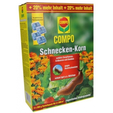 Das Schneckenkorn von Compo ist ein einfaches aber effektives Mittel zur Schneckenabwehr und basiert auf dem Kontaktprinzip. Schnecken werden von dem Duft des Schneckenkorns angelockt und lösen durch den Kontakt mit dem Schneckenkorn über ihren Schleim den Wirkstoff an sich. Dieser setzt die Drüsenfunktion der Schnecken außer Gefecht und verödet diese. Die Schnecken werden abgetötet.