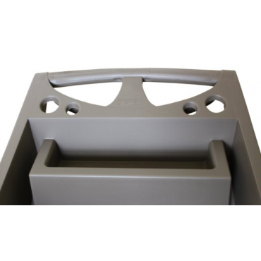 Die Brouette Gartenschubkarre besitzt eine tiefliegende Wanne und kann somit besonders leicht befüllt werden. Über eine Kippmöglichkeit wird sie mit geringem Kraftaufwand entleert, dank einer Hebelwirkung ist das Aufrichten einfach. Für sicheres Stehen und Fahren besitzt die Schubkarre zwei Räder aus Kunststoff auf einer Metallachse. Im Griffbereich und an der Seite befinden sich Öffnungen und Halter zum Transportieren von Werkzeug, im Inneren befindet sich eine Ablage.