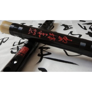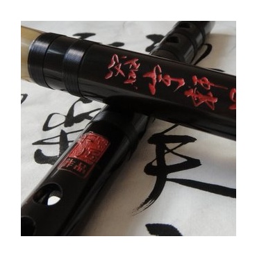 Chinesische Flöten haben eine lange Tradition. Im 8. Jahrhundert gelangten sie von China nach Japan, wurden aber aufgrund ihrer geringen Lautstärke immer weniger verwendet, bis sie Ende des 16. Jahrhunderts von Mönchen wiederentdeckt wurden. Dem trägt die exquisite schware Sandelholz Flöte durch ihre optisch glamouröse Erscheinung voll und ganz Rechnung. Sie ist mit chinesischen Schriftzeichen verziert und präsentiert sich optisch eindrucksvoll und klanglich ausgezeichnet.