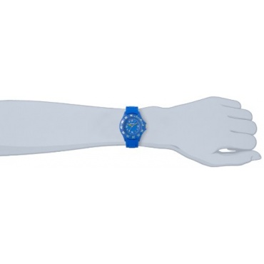 Die blaue Scout Jungen-Armbanduhr ist cool und sportlich. Das Gehäuse ist aus Silikon gefertigt und der Topring lässt sich im Uhrzeigersinn drehen. Die Krone besitzt einen Kronenschutz. Das leuchtende Grün der Kinderuhr erzeugt einen tollen Kontrast zum Blau.