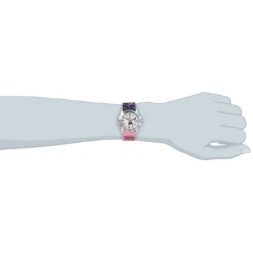 Diese Kontraste und Zeiteinteilungen helfen dem Kind dabei, die jeweilige Uhrzeit genau von der Uhr ablesen zu können. Die Armbanduhr verfügt über ein Quarzuhrwerk und Mineralglas, das wasserdicht ist. Das aus textilem Gewebe gefertigte Armband passt sich in seiner Farbgestaltung dem Ziffernblatt an. Neben dem Markennamen erscheint erneut ein Pferdekopf, der bunt eingerahmt ist und auf der anderen Seite des Armbandes befindet sich ein Hufeisen in pink, das mit lauter Sternen umgeben ist.