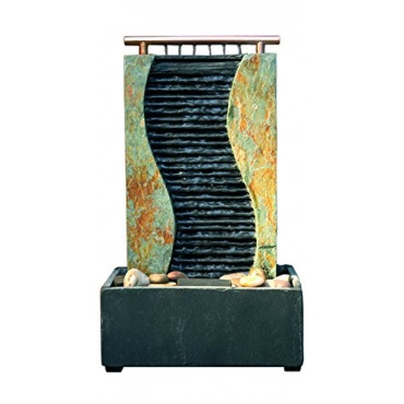 Der attraktive Schieferbrunnen ist nicht nur dekorativ, sondern übt auch eine beruhigende Wirkung auf die Psyche aus.Das Motiv des Brunnens ist einem langsam fließenden Fluß nachempfunden, der gemäß der Lehre des Feng Shui in Räumen positive Energie freisetzen kann. Man kann sich von dem leisen Plätschern des Brunnens verzaubern lassen und auf diese Weise ein individuelles Wohnambiente schaffen, in dem man sich wohl fühlen kann. Pumpe und Beleuchtung für den Brunnen sind im Lieferumfang enthalten.