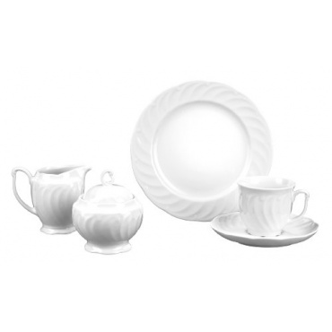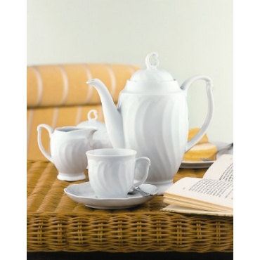 Das Set besteht aus 20 Teilen. Neben je sechs Kaffeeobertassen, Kaffeeuntertassen und Frühstückstellern gehören eine Zuckerdose und ein Milchkännchen zum Service. Sowohl die Zubereitung als auch das Abwaschen bereitet mit diesem Geschirr keine Probleme. Es ist für den Backofen und die Mikrowelle genauso geeignet wie für die Spülmaschine. Der angenehme Weißton drückt eine elegante Tischkultur aus.