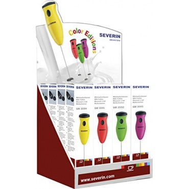 Bei diesem Severin Milchaufschäumer-Display DF 9597 SEV bekommt man gleich 16 Milchaufschäumer. Daher ist dieses Display sehr gut für Händler oder Wiederverkäufer geeignet. Die Milchaufschäumer sind in vier verschiedenen Farben erhältlich. Jeweils vier Milchaufschäumer sind dabei in den Farben rot, grün, gelb, und lila. Daher sehen die Milchaufschäumer nicht nur gut aus. Sie sind natürlich auch noch sehr funktional.