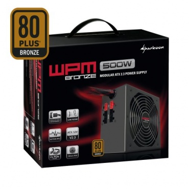 Mit dem WPM500 präsentiert Sharkoon ein Netzteil, das für die Stromversorgung von Desktop-PCs mit mittlerer Leistungsaufnahme vorgesehen ist. Die angegebene Leistung liegt bei 500 Watt und das Netzteil erreicht eine Effizienz von bis zu 85 Prozent. Aufgrund dieser Leistungswerte wurde es mit dem 80 Plus Bronze Zertifikat versehen. Ein aktiver Leistungsfaktorkorrekturfilter sorgt konstant für einen ausreichenden Stromfluss für alle angeschlossenen Komponenten.