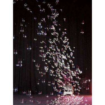 Die Mega Seifenblasenmaschine Showtec Mega-Bubble wirbelt mit 4 verschiedenen und separaten Ventilatoren Blasen in die Luft. Durch das besonders leistungsstarke System können innerhalb kürzester Zeit große Massen an Blasen erzeugt und aufgewirbelt werden. Die Flüssigkeit ist Bubble-Liquid (80360).