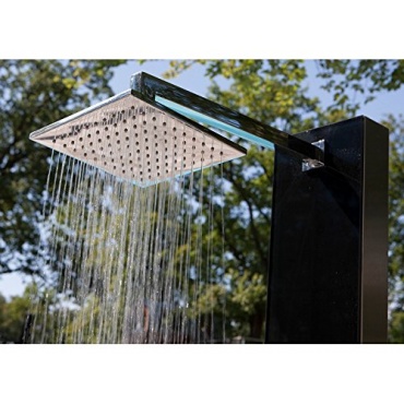 Die IDEAL Kuba Dusche liefert mit dem verstellbaren und verchromten Duschkopf einen optimalen Wasserstrahl. Mit Hilfe eines Flexschlauch wird die Dusche rasch und einfach angeschlossen. Das elegante schwarz silberne Design macht die komplette Poollandschaft zum Highlight. Die Dusche ist auf eienr Bodenplatte mit den Abmessungen 770 x 770 Milimter befestigt. Zudem verhindert die eingerahmte Bodenplatte das Hochspritzen des Wassers beim Duschen. Die Füße bleiben sauber und stehen nicht im Wasser.