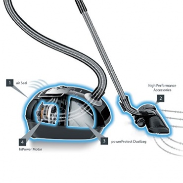 Der Staubsauger verfügt über technische Pluspunkte, die überzeugen. Der Stromverbrauch ist gering bei einer guten Leistungsfähigkeit, was im Einbau der innovativen, von Siemens entwickelten, quattroPower Technology begründet ist. Das Gerät reinigt Hartböden wie Teppichböden gleichermaßen gründlich. Zum Lieferumfang gehört eine extrabreite Polsterdüse, die auch hartnäckige Tierhaare entfernt. Durch eine Fußbedienung lässt sich die Düse während der Arbeit problemlos an verschiedene Bodenbeläge anpassen.