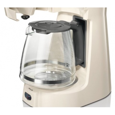 Der schwenk- und abnehmbare Filter (1x4) ermöglicht leichtes Leeren und Reinigen. Die Glaskanne kann nach Gebrauch sicher und platzsparend verstaut werden. Dank SafeStorage verschwinden sowohl Kannengriff als auch Kabel und Stecker im Inneren der Maschine. Die im Wassertank intergrierte Wasserstandsanzeige ist von aussen gut lesbar. Die Siemens 300 Plus schaltet sich automatisch ab.
