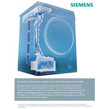 Für das neue Trocknermodell der Marke Siemens müssen Sie etwas tiefer in die Tasche greifen, allerdings lohnt sich die Investition. Mit der hohen Füllmenge können Sie Ihre gesamte Waschmaschinenladung auf einmal trocknen. Die hohe Qualität der Maschine zeigt sich auch im leisen Arbeitsvorgang. Der Trockner ist kaum zu hören und arbeitet in raschem Tempo. Vor allem für größere Wohngemeinschaften ist das Gerät unverzichtbar geworden.