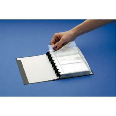 - sichtbar und griffbereit in durchsichtigen Hüllen