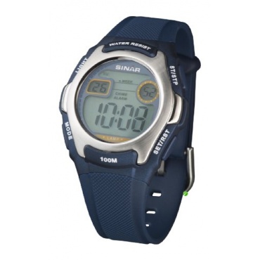 Neben der digitalen Zeitanzeige verfügt die Sinar Armbanduhr über ein Stundensignal, einen Timer und eine Stoppuhr-Funktion. Die zweite Zeitzone zeigt die Uhrzeit in dem ausgewählten Land an. Außerdem gibt es ein EL-Licht, und die Uhr ist bis zu 10 bar wasserdicht. Das Material des Armbands ist Resin, woran sich eine Dornschließe befindet.
