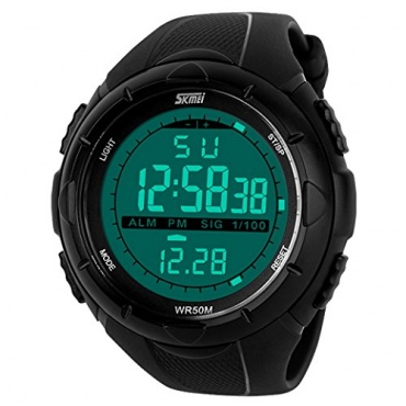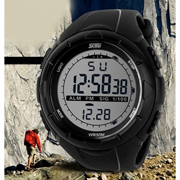 Eine Uhr für Knaben jedes Alters. Diese Digitalarmbanduhr ist gemacht für den Kinderalltag. Ob beim Sport, in der Schule oder beim Tauchen - diese Big Face Watch mit Gummiarmband ist rutschfest und sitzt bequem am Handgelenk. Sie verfügt über eine Alarmfunktion und eine Stoppuhr. Zudem ist sie wasserdicht, was das Tauchen in bis zu 50 Meter Tiefe möglich macht. Dank der LED-Hintergrundbeleuchtung kann auch im Dunkeln die Zeit abgelesen werden.