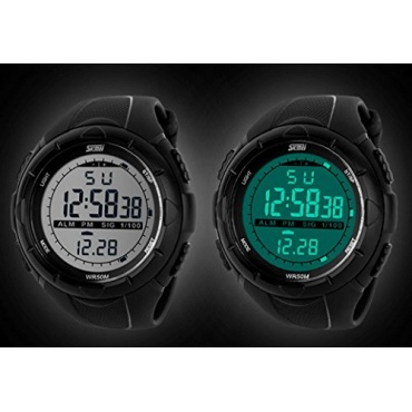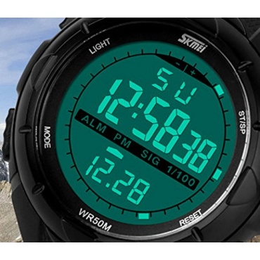 Diese Jungenarmbanduhr hält dem Kinderalltag stand. Ob beim Sport, in der Schule oder beim Tauchen - diese Digitaluhr mit robustem Gummiarmband kann überall problemlos getragen werden. Sie verfügt über eine Alarmfunktion und eine Stoppuhr. Zudem erlaubt es die modische Big Face Watch das Tauchen in bis zu 50 Meter Tiefe. Dank der LED-Hintergrundbeleuchtung kann auch im Dunkeln die Zeit abgelesen werden.