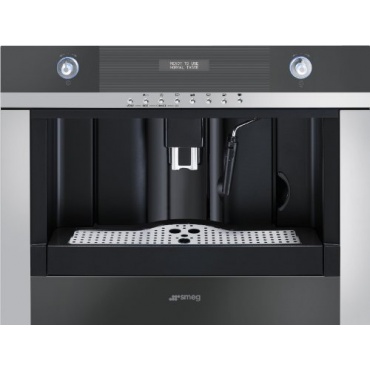Die Einbaukaffeemaschine CMSC45NE von Smeg bietet solide Grundfunktionen eines Vollautomaten, wie die Dampffunktion zum Milchaufschäumen, Heißwasserfunktion und Espresso oder Kaffee in verschiedenen Varianten. Der höhenverstellbare Kaffeeauslauf ermöglicht auch die schrittweise Zubereitung von Cappuccino und Latte Macchiato. Das integrierte Mahlwerk ist einstellbar auf verschiedene Grade und neben dem Kaffebohnenbehälter kann auch Kaffeepulver eingefüllt werden.