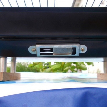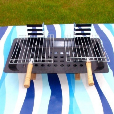 Der Tischgrill von SN-Import ist ideal für Picknicke geeignet. Er besteht aus Stahl, die Grillroste wurden aus verchromtem Metall gefertigt. Die Auflagefläche für Grillgut liegt bei 17 x 21 cm pro Rost. Die Gesamtmaße des Grills liegen bei 47 x 37 x 19 cm. Die Höhe des Grills ist ebenfalls über 3 Stufen einstellbar.