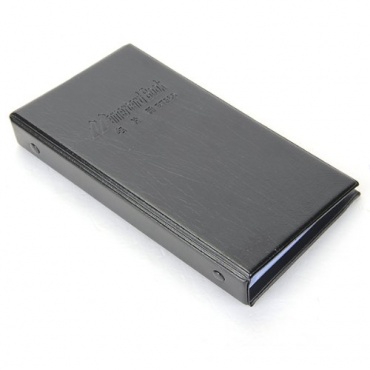 Hochwertig aus Kunstleder ist die Sodial Visitenkartenmappe angefertigt worden. Die Visitenkartenmappe ist im Format DIN A5 und verfügt über 50 Blätter. Diese Blätter können bis zu 300 Visitenkarten aufnehmen. Wobei man mit der Mappe nicht nur Visitenkarten aufnehmen kann, sondern alle möglichen Karten, von Serive- bis Kundenkarten, die in einem gleichen Format sind. Farblich ist die Sodial Visitenkartenmappe in einem Schwarzton gehalten. Die Abmessungen der Mappe betragen 19,2 x 11 x 2,5 cm.